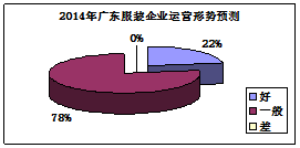 对比2013年调研情况,今年企业对整体运营形势判断趋于良好,22%企业认为今年运营情况会“好”,78%企业认为“一般”,没有企业认为“差”。超过半数企业认为今年行业形势“危机并存”,30%企业认为“机大于危”,15%认为“困难重重、危大于机”。选择“机大于危”的企业认为,在行业洗牌中,随着一批竞争力弱的企业退出,优秀人才、市场渠道、供应商等优质资源将会更容易向他们集中,整个行业将呈现出区域布局调整加快、产品结构进一步优化、品牌运作水平不断提高的态势。